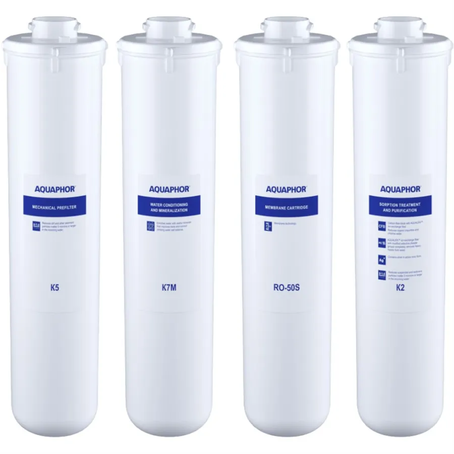 Kompletná sada filtrov Aquaphor RO-101S je určená pre systémy reverznej osmózy a predstavuje kompletnú servisnú výmenu. Obsahuje štyri kľúčové filtre - K5, K2, K7M a membránu RO-50S. Tie spoločne zaisťujú dôkladné čistenie vody od mechanických nečistôt, chemických látok aj mikrobiologických rizík.