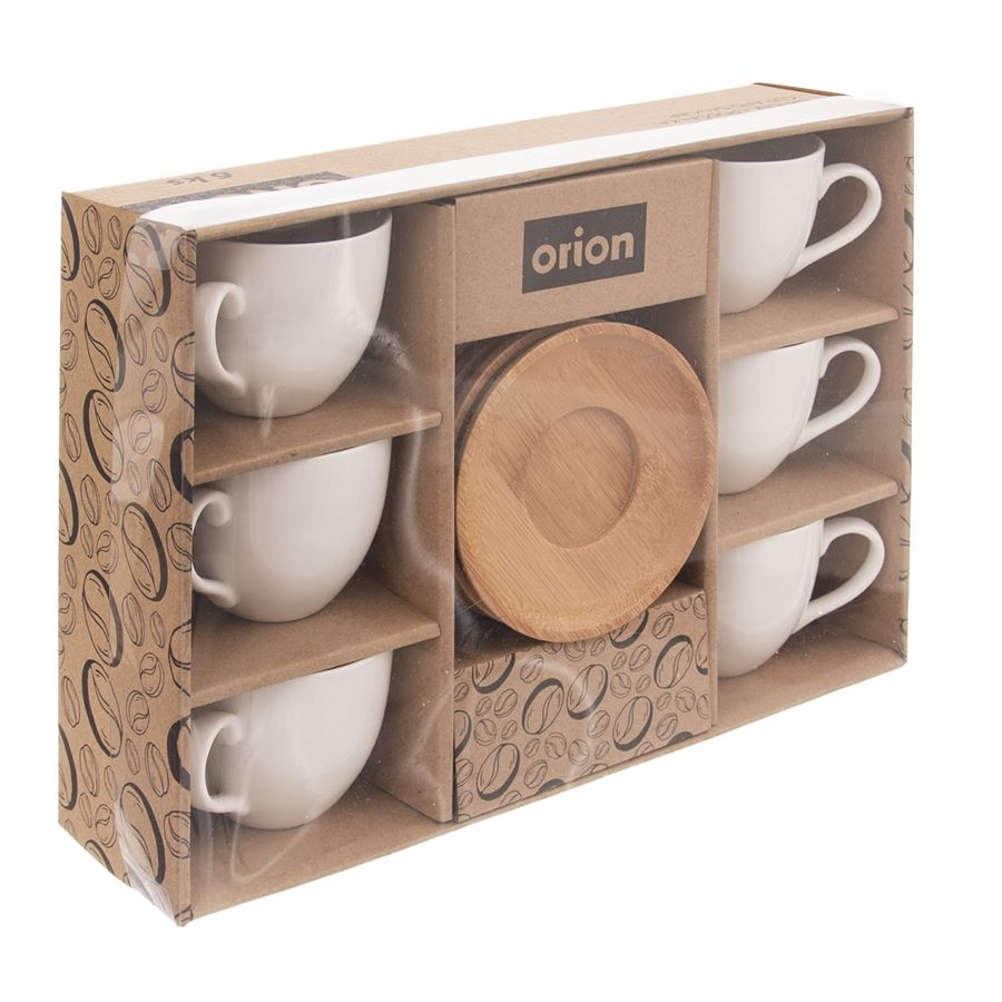 Sada obsahuje 6 hrnčekov z kvalitného bieleho porcelánu s objemom 140 ml a 6 podšálok z bambusového dreva budete doma radi používať každý deň.