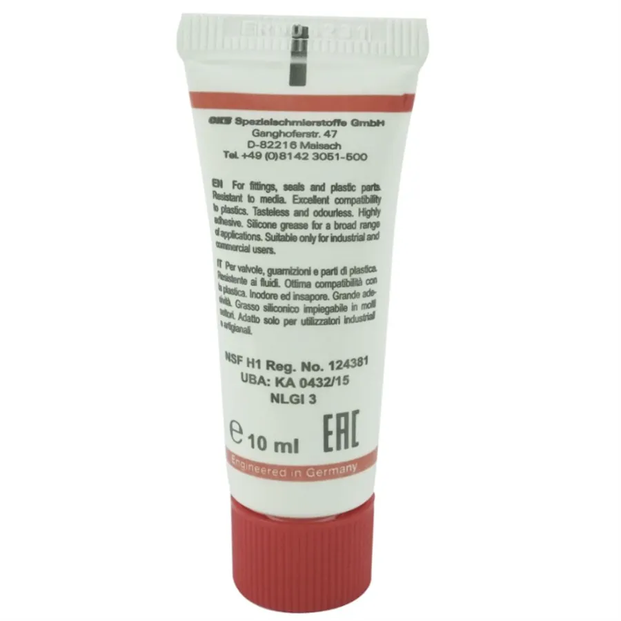 Mazivo vykazuje výbornú priľnavosť ku všetkým bežným materiálom vrátane plastov a elastomérov, takže spoľahlivo utesní spoje v kávovare bez rizika poškodenia súčiastok. Odolnosť v rozsahu od −40 °C do +200 °C zabezpečí bezproblémovú prevádzku ako v horúcich častiach kávovaru, tak aj v chladnom sanitárnom potrubí.