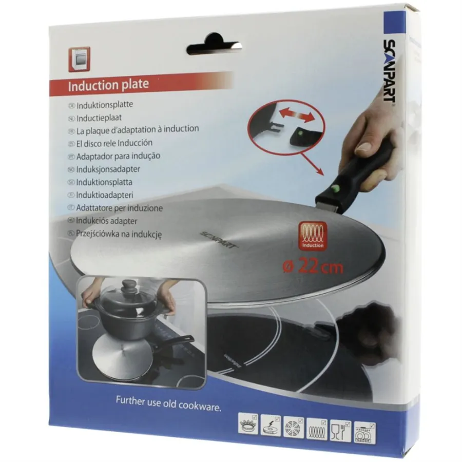 Máte obľúbený riad, ktorý na indukčnom sporáku nefunguje? Indukčná podložka ScanPart s odnímateľnou rukoväťou o priemere 22 cm vám umožní používať bežný riad aj na indukčnom sporáku. Vyrobená z odolnej nehrdzavejúcej ocele, takže vydrží každodenné používanie v kuchyni.