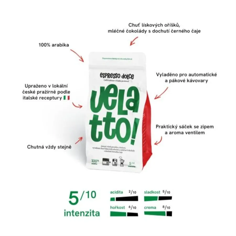 Velatto Espresso Dolce zrnková káva (100 % Arabika)
