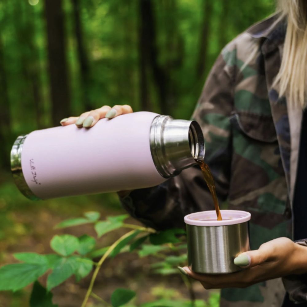 - Termoska na nápoje (1 l) – hodí sa na čaj, kávu alebo horúcu vodu. Je dostatočne veľká, aby stačila na celodenný výlet, ale vďaka úzkemu tvaru sa zmestí aj do batohu.