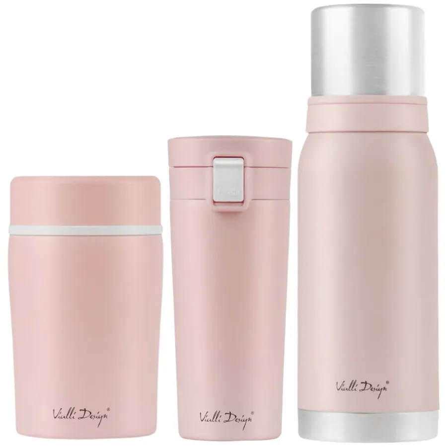 Vialli Design Fuori ružová – súprava termosky, termohrnčeka a termosky na jedlo