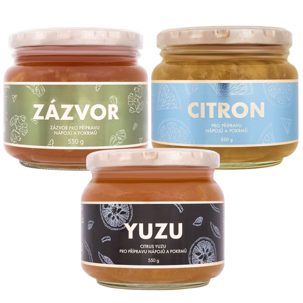 | Obsah balenia | Yuzu 550 g + Zázvor 550 g + Citrón 550 g |